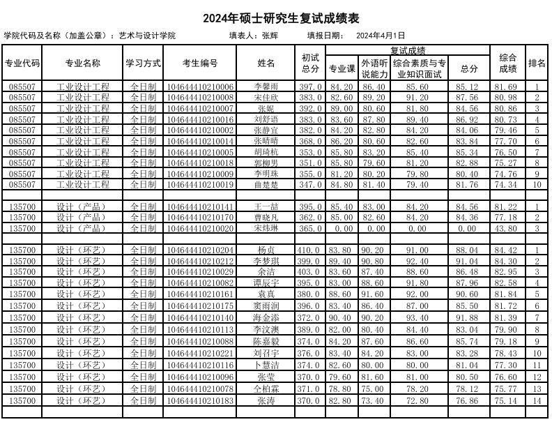河南科技大學(xué)藝術(shù)與設(shè)計(jì)學(xué)院2024年考研復(fù)試成績(jī)公示 發(fā)布時(shí)間:2024-04-01 河南科技大學(xué)藝術(shù)與設(shè)計(jì)學(xué)院2024年考研復(fù)試成績(jī)公示 上一篇:河南科技大學(xué)藝術(shù)設(shè)計(jì)學(xué)院2024年考研復(fù)試名單公布 下一篇:河南科技大學(xué)藝術(shù)與設(shè)計(jì)學(xué)院2025年年保研名單公示