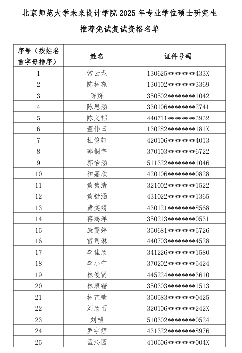北京師范大學未來設計學院2025年保研復試資格名單 發(fā)布時間:2024-09-27 北京師范大學未來設計學院2025年保研復試資格名單 上一篇:北京師范大學未來設計學院2024年考研真題分享:905美術設計書法創(chuàng)作分析 下一篇:北京師范大學未來設計學院2025年考研招生目錄及招生人數(shù)