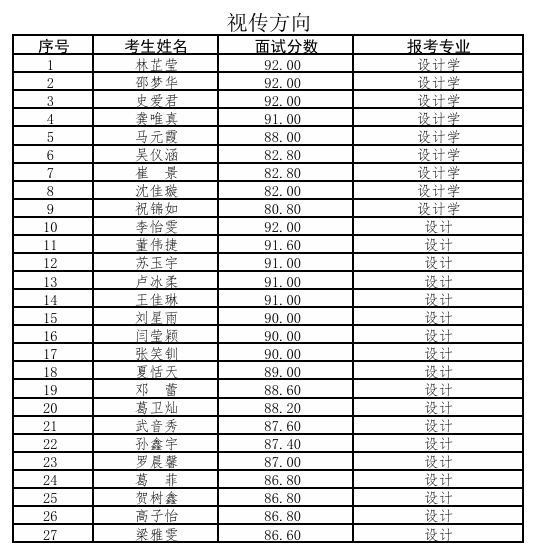 中國地質(zhì)大學(武漢)藝術與傳媒學院2025年保研面試成績公示 發(fā)布時間:2024-09-28 中國地質(zhì)大學(武漢)藝術與傳媒學院2025年保研面試成績公示 上一篇:中國地質(zhì)大學(武漢)工業(yè)設計導師簡介 下一篇:中國地質(zhì)大學(武漢)珠寶學院2025年考研招生目錄及招生人數(shù)