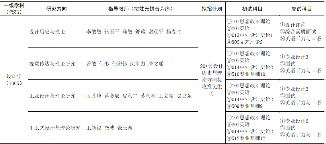 四川美術(shù)學院設(shè)計藝術(shù)學院2020年考研招生目錄