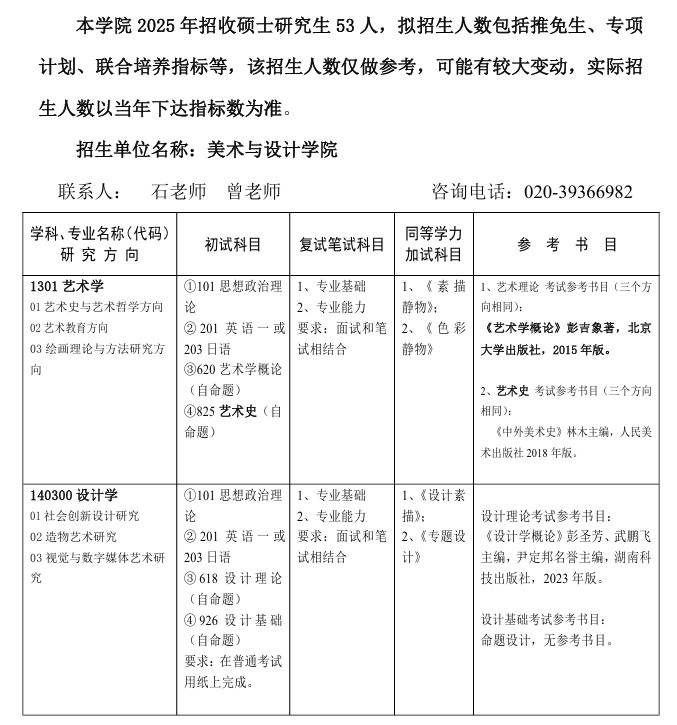 廣州大學(xué)美術(shù)與設(shè)計學(xué)院2025年考研招生目錄及參考書目 發(fā)布時間:2024-09-30 廣州大學(xué)美術(shù)與設(shè)計學(xué)院2025年考研招生目錄及參考書目 上一篇:廣州大學(xué)美術(shù)與設(shè)計學(xué)院2024-2025學(xué)年推薦優(yōu)秀應(yīng)屆本科畢業(yè)生免試攻讀研究生公示 下一篇:廣州大學(xué)美術(shù)與設(shè)計學(xué)院2025年保研錄取名單
