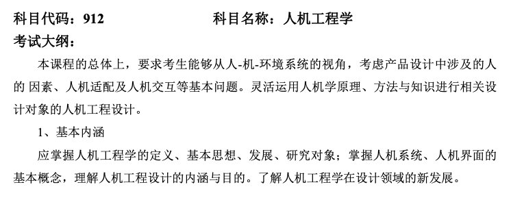 天津科技大學(xué)2025年工業(yè)設(shè)計工程考研考試大綱及參考書目:912人機工程學(xué) 發(fā)布時間:2024-10-08 天津科技大學(xué)2025年工業(yè)設(shè)計工程考研考試大綱及參考書目:912人機工程學(xué) 上一篇:天津科技大學(xué)2025年工業(yè)設(shè)計工程考研考試大綱及參考書目:337工業(yè)設(shè)計工程 下一篇:天津科技大學(xué)藝術(shù)學(xué)院2025年保研錄取名單