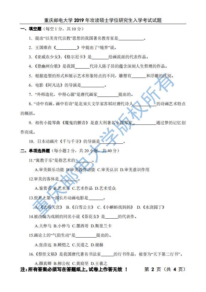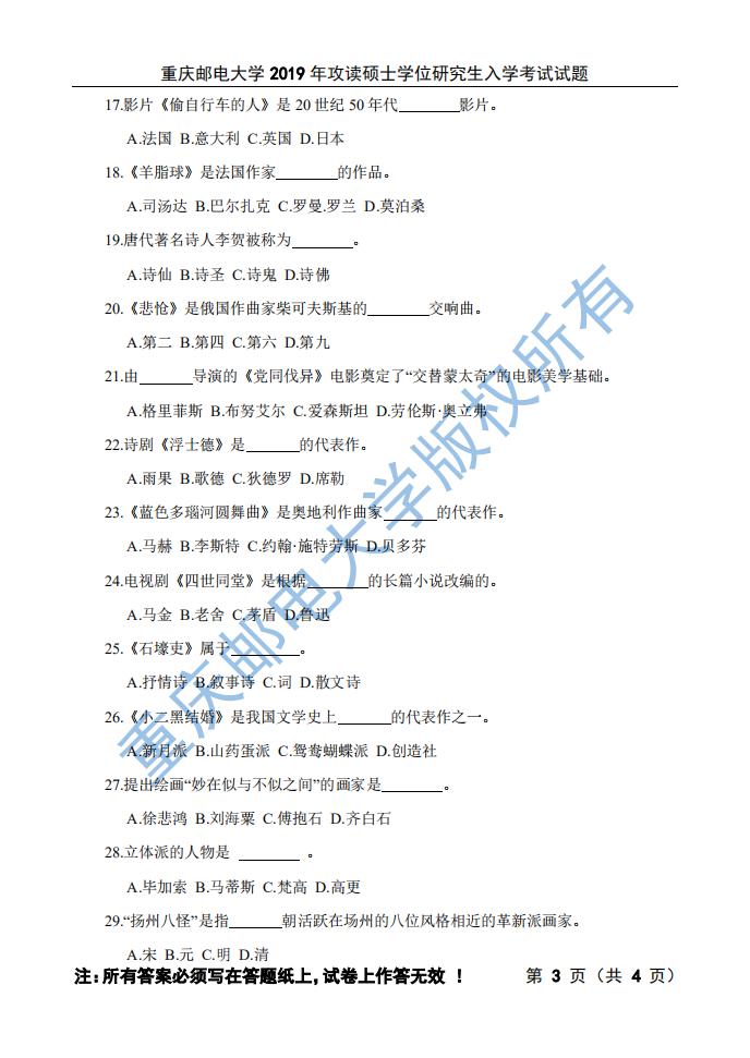 重慶郵電大學傳媒藝術學院2019年考研真題—613藝術綜合 發(fā)布時間:2019-09-01 重慶郵電大學傳媒藝術學院2019年考研真題—613藝術綜合 上一篇:重慶郵電大學2020年考研考試大綱—821藝術設計理論 下一篇:重慶郵電大學傳媒藝術學院2019年考研真題—821藝術設計理論