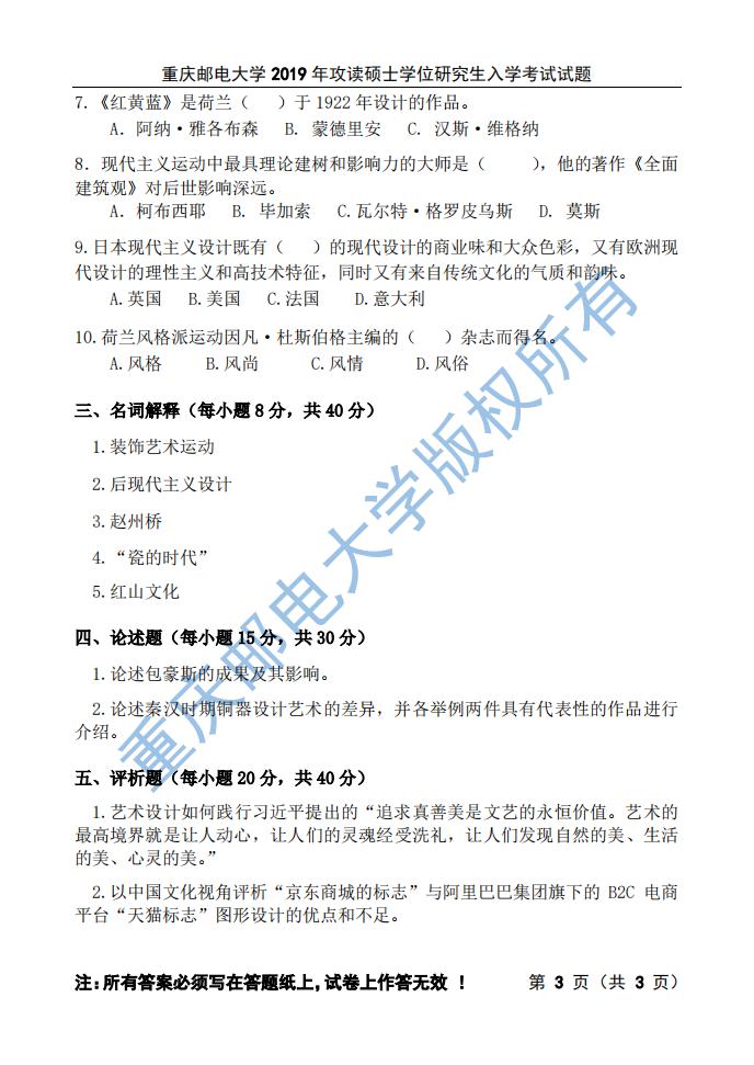 重慶郵電大學傳媒藝術(shù)學院2019年考研真題—821藝術(shù)設(shè)計理論 發(fā)布時間:2019-09-01 重慶郵電大學傳媒藝術(shù)學院2019年考研真題—821藝術(shù)設(shè)計理論 上一篇:重慶郵電大學傳媒藝術(shù)學院2019年考研真題—613藝術(shù)綜合 下一篇:重慶郵電大學2020年考研復試分數(shù)線公告