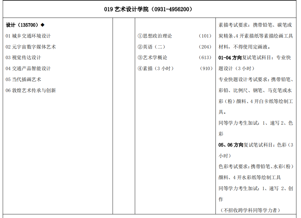 蘭州交通大學(xué)藝術(shù)設(shè)計(jì)學(xué)院2025年設(shè)計(jì)考研招生目錄及參考書目 發(fā)布時(shí)間:2024-10-08 蘭州交通大學(xué)藝術(shù)設(shè)計(jì)學(xué)院2025年設(shè)計(jì)考研招生目錄及參考書目 上一篇:蘭州交通大學(xué)藝術(shù)設(shè)計(jì)學(xué)院2024年考研復(fù)試錄取名單 下一篇:沒有了