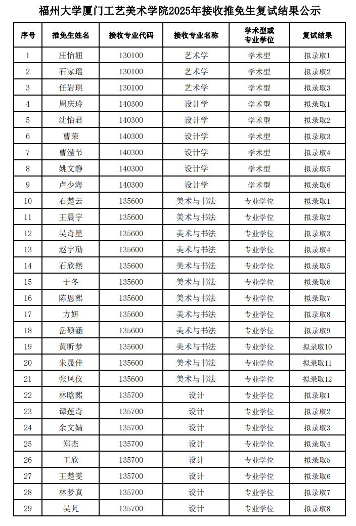 福州大學(xué)廈門工藝美術(shù)學(xué)院2025年保研錄取名單公示 發(fā)布時(shí)間:2024-09-30 福州大學(xué)廈門工藝美術(shù)學(xué)院2025年保研錄取名單公示 上一篇:福州大學(xué)廈門工藝美術(shù)學(xué)院2024年考研報(bào)錄比情況 下一篇:福州大學(xué)廈門工藝美術(shù)學(xué)院2025年考研真題:624設(shè)計(jì)理論