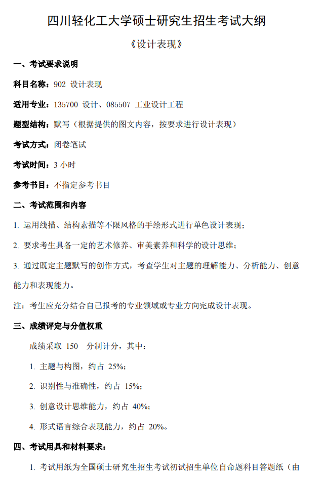 四川輕化工大學機械工程學院2025年工業(yè)設計工程考研參考書目及考試大綱:902設計表現(xiàn) 發(fā)布時間:2024-10-06 上一篇:四川輕化工大學機械工程學院2025年工業(yè)設計工程考研參考書目及考試大綱:337工業(yè)設計工程 下一篇:四川輕化工大學2024年工業(yè)設計工程考研錄取名單公示