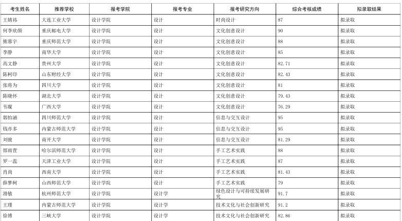 四川美術(shù)學(xué)院設(shè)計(jì)學(xué)院2025年保研錄取名單