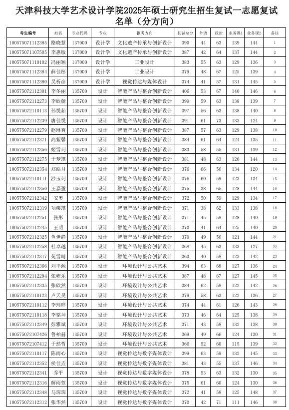 天津科技大學(xué)藝術(shù)設(shè)計(jì)學(xué)院2025年考研復(fù)試名單