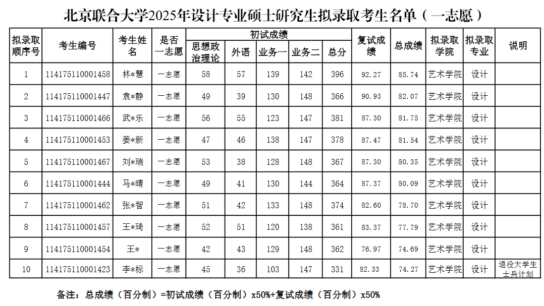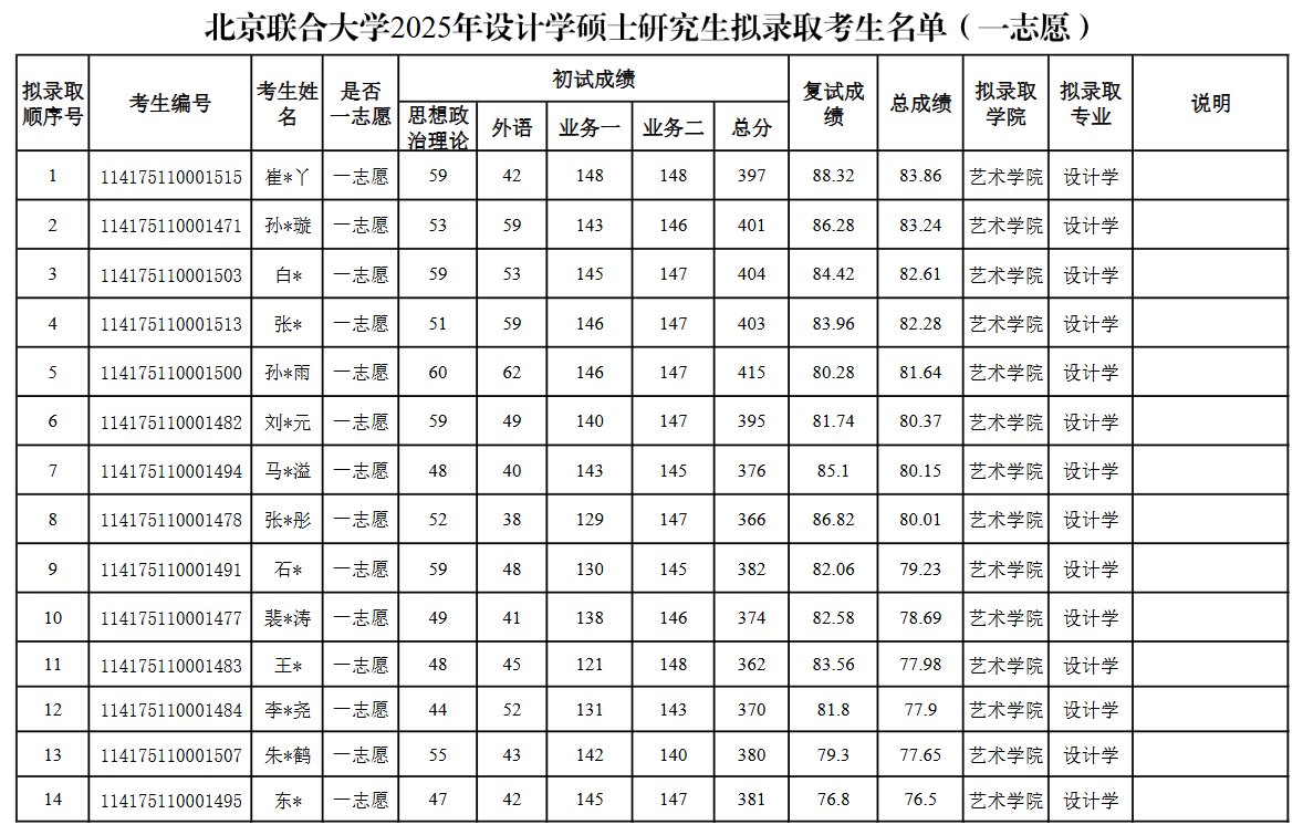 北京聯(lián)合大學(xué)藝術(shù)學(xué)院2025年考研錄取名單(一志愿) 發(fā)布時(shí)間:2025-03-26 北京聯(lián)合大學(xué)藝術(shù)學(xué)院2025年考研錄取名單(一志愿) 上一篇:北京聯(lián)合大學(xué)藝術(shù)學(xué)院2025年考研復(fù)試名單 下一篇:北京工商大學(xué)設(shè)計(jì)藝術(shù)學(xué)院2025年考研擬錄取名單(一志愿)