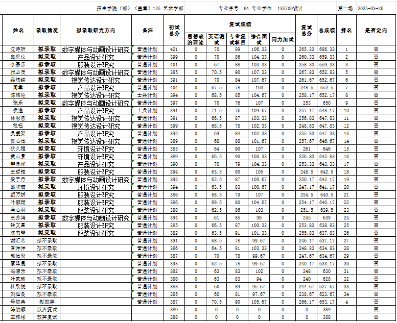 深圳大學(xué)藝術(shù)學(xué)部2025年考研復(fù)試錄取名單
