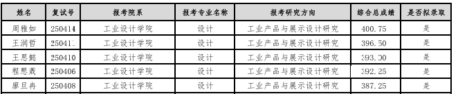 湖北美術(shù)學(xué)院工業(yè)設(shè)計學(xué)院2025年考研復(fù)試擬錄取名單