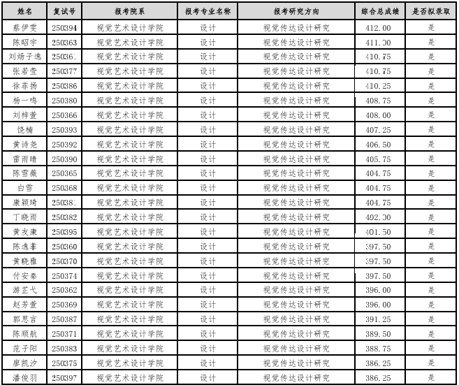 湖北美術大學視覺藝術設計學院2025年考研復試擬錄取名單 發(fā)布時間:2025-03-31 上一篇:湖北美術大學環(huán)境藝術學院2025年考研復試擬錄取名單 下一篇:湖北美術大學創(chuàng)新學院2025年考研復試擬錄取名單