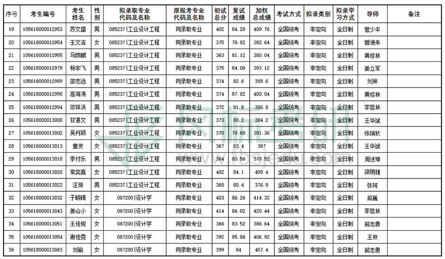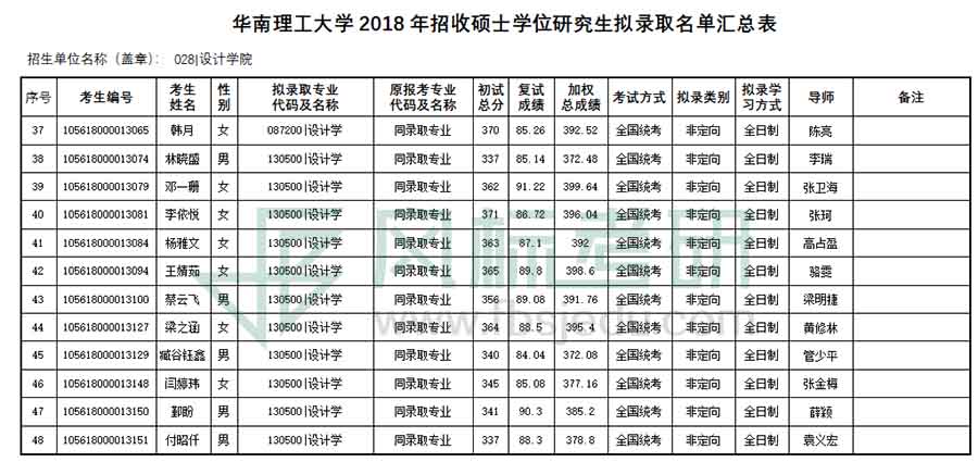 華南理工大學(xué)設(shè)計(jì)學(xué)院2018年考研錄取名單